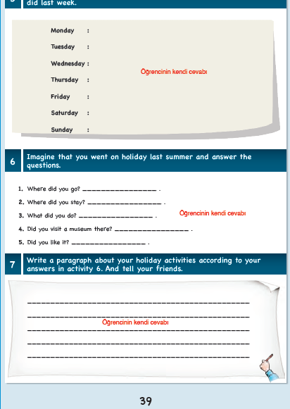 Ülkemizde eğitim öğretim yıllarında öğrencilerin en zorlandığı derslerden olan İngilizce dersi Tüm sınıflarda öğrencilere okutulmaktadır. 6. sınıf öğrencilere ücretsiz olarak dağıtılan Ada yayınları 6. sınıf İngilizce Ders Kitabı Talim terbiye kurulunca belirlenmiş olan öğrenci kazanımlarına uygun olarak özenle hazırlanmıştır. Ada yayınları İngilizce Çalışma kitabında yer alan sorular belirlenmiş olan kazanımların öğrenci tarafından kazanılıp kazanılmadığını ölçmek için geçerli bir şekilde hazırlanmıştır. Bu sayfada 2017- 2018 Ada Yayınları İngilizce Çalışma Kitabı Soru ve Cevapları Sayfa 39 ulaşabilirsiniz.