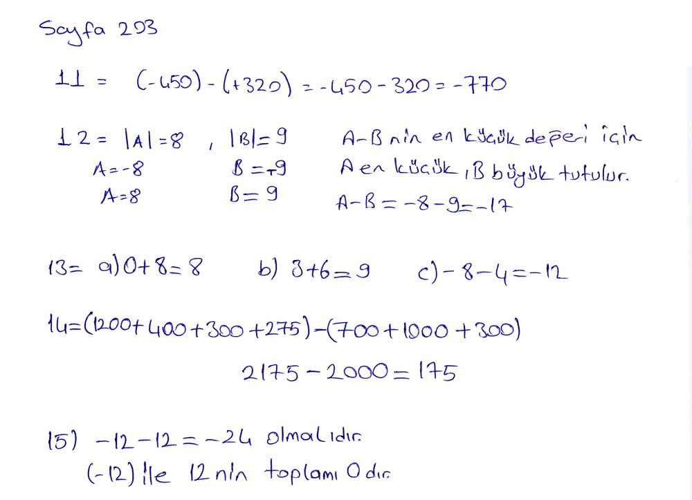 6. Sınıf Mega Yayıncılık Matematik Ders Kitabı Cevapları Sayfa 203