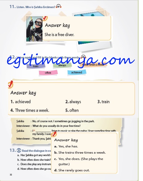 2017 2018 7. Sınıf Pantera Yayınları İngilizce Ders Kitabı cevapları Sayfa 32