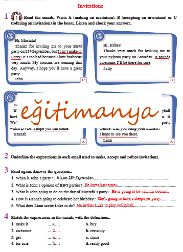 2017-2018 Tutku Yayıncılık 8.Sınıf İngilizce Ders Kitabı Cevapları Sayfa 11