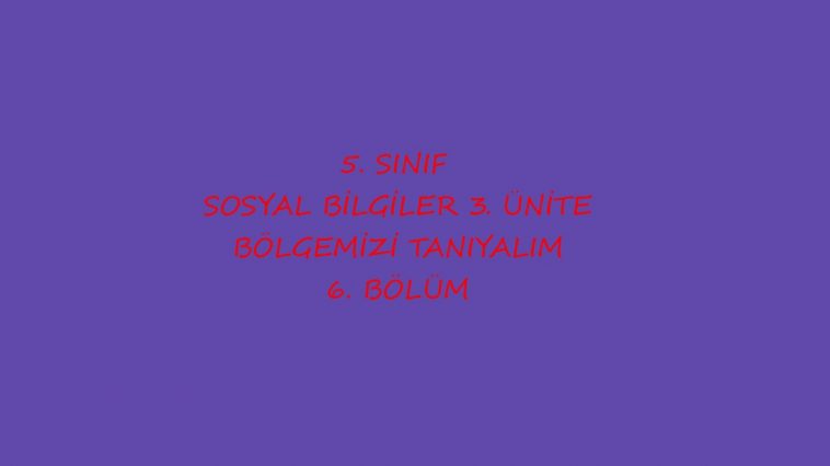 3. ÜNİTE BÖLGEMİZİ TANIYALIM 6. BÖLÜM