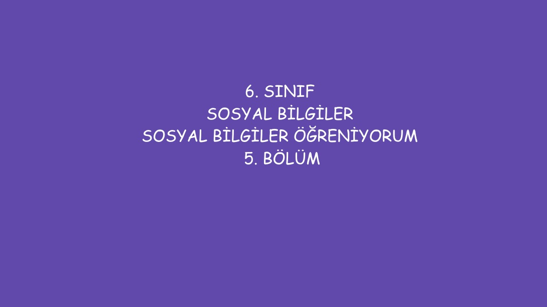6. SINIF SOSYAL BİLGİLER 1. ÜNİTE: SOSYAL BİLGİLER ÖĞRENİYORUM 5. BÖLÜM