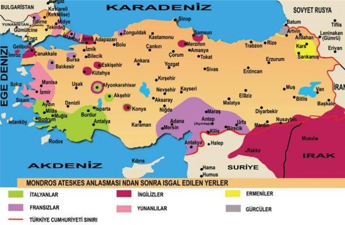 - Urfa, Antep, Maraş ve Suriye ile Lübnan Fransa’nın mandasına verilmiştir.