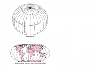 ♦ Başlangıç meridyeni, İngiltere’de Londra yakınlarındaki Greenwich kasabasındaki aynı adla anılan gözlem evinden geçen meridyen yayı olarak kabul edilir.